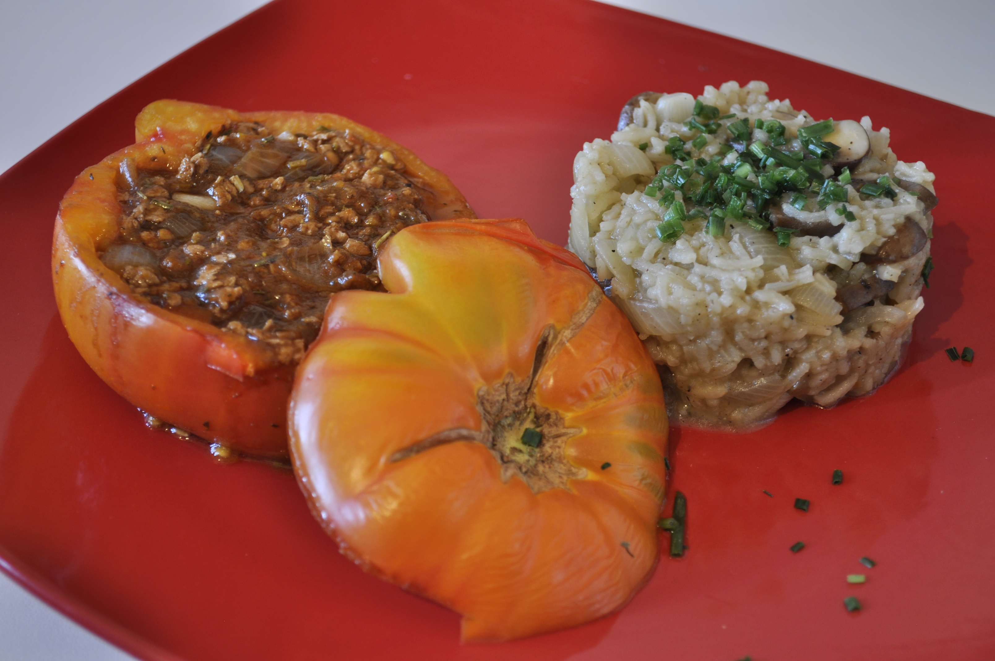J’accompagne quasi systématiquement mes tomates farcies de riz, cette fois ce fut un riz aux champignons et oignon !!